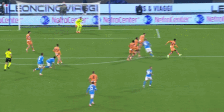 第45分鐘,迪洛倫佐傳中,諾阿-朗頭球破門,那不勒斯3-0