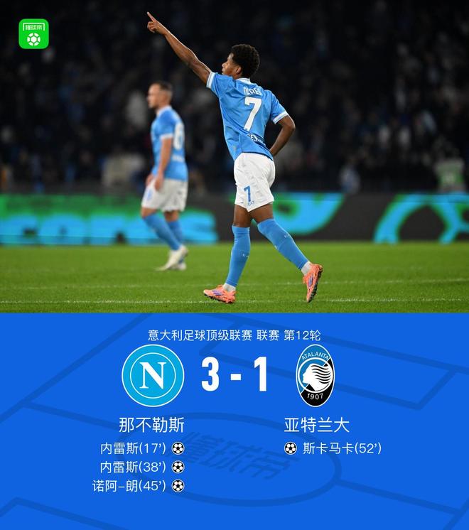 2025年11月23日 近四場(chǎng)首勝+先賽暫登頂!那不勒斯3-1亞特蘭大 內(nèi)雷斯雙響