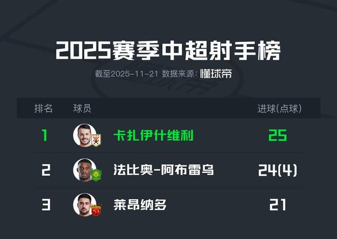 射手榜方面,目前排名第三位的萊昂納多與第一卡扎相差4球,在聯賽僅剩1輪的情況下,爭奪賽季金靴僅存理論可能性。