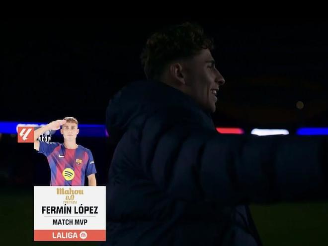 西甲第13輪,巴塞羅那主場(chǎng)4-0大勝畢爾巴鄂競(jìng)技,此役打入一球的費(fèi)爾明當(dāng)選西甲官方全場(chǎng)最佳球員。