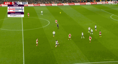第36分鐘,接梅里諾傳球后,特羅薩德瀟灑轉身射門得手,阿森納1-0領先!