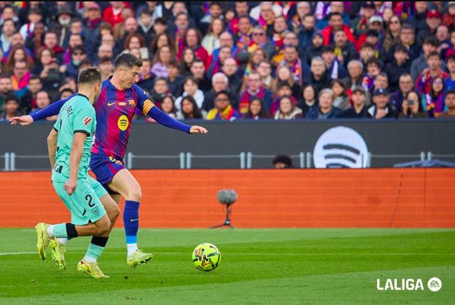 開場(chǎng)只有4分鐘,亞馬爾一個(gè)人攪亂畢爾巴鄂的防線,好不容易斷下皮球,卻注意力不集中被搶斷,萊萬(wàn)多夫斯基逆足小角度勁射,攻破了西班牙國(guó)門烏奈·西蒙的十指關(guān)。
